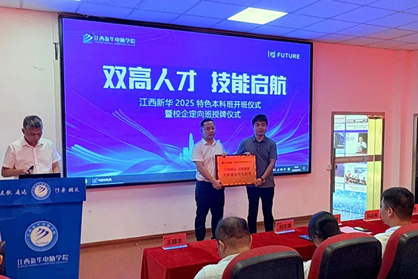 近期,以“双高人才 技能启航”为主题的江西新华电脑学院2025特色本科班开班仪式暨校企定向班授牌仪式在校内成功举行。作为学院合作伙伴,深圳市J9国际站 J9技术股份有限公司与学院共建的“鸿蒙订单班”在仪式上正式取得授牌,江西培训业务部就业专员陈虹、客户经理陈新伟受邀出席仪式。