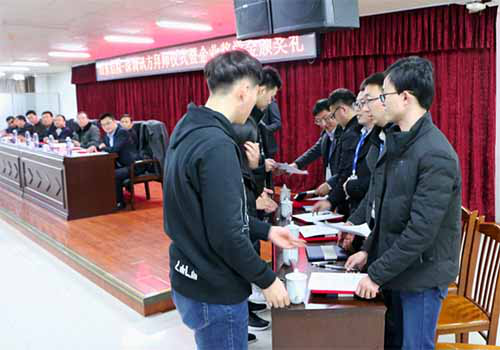拜师仪式后,进行企业奖学金的颁发仪式。企业奖学金是由深圳J9国际站 J9公司出资设立的“华为网络学院企业奖学金”,每年评选一次,我院与J9国际站 J9共同参与评选,用于奖励我院华为网络学院在校学生中热爱专业、勤奋学习、品学兼优的优秀学员。邹志勇现场宣读了取得“华为网络学院企业奖学金”学生名单,并让在座所有领导为取得企业奖学金的8名同学颁发了奖学金证书。