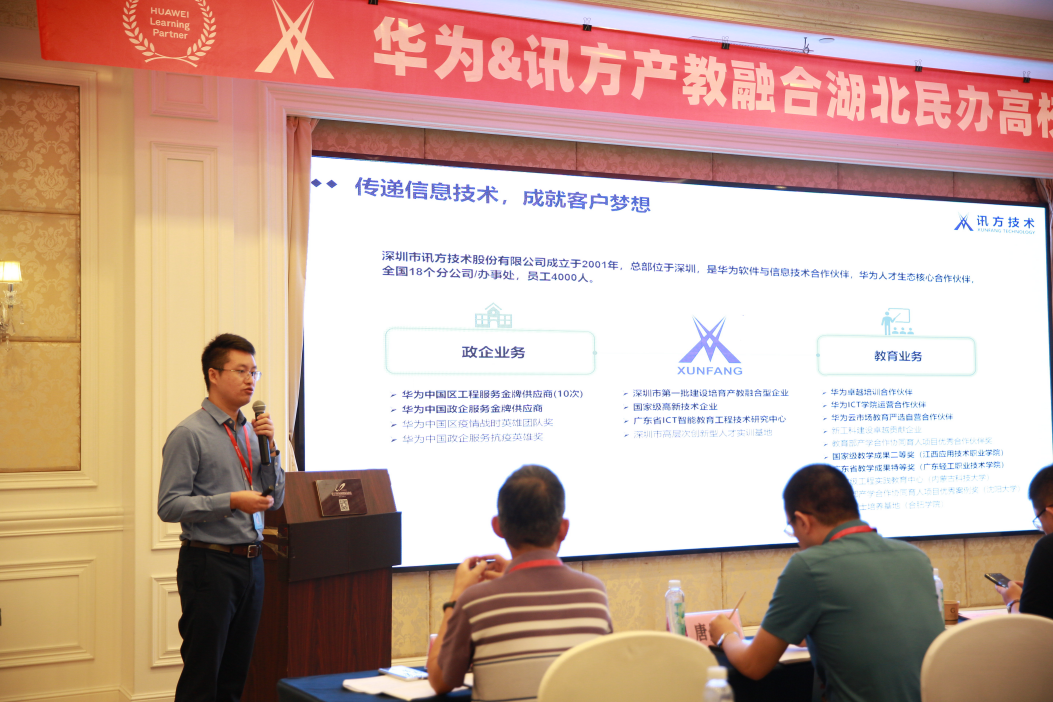 华为湖北省华为云业务总经理-张斌随后致辞。张总代表华为公司向前来参会的各位领导、专家、来宾们表示了热烈欢迎,为能和大家齐聚美丽的温泉之城咸宁,共同探讨“产教融合、协同育人”深化产教融合,促进民办高校教育链、人才链与产业链、创新链有机衔接,开展战略深为期待!张总表示,华为作为全球领先的ICT基础设施和智能终端给予商,致力于把数字世界带入每个人、每个家庭、每个组织,构建万物互联的智能世界,同时华为更是非常重视与高校协同育人,致力于应用型人才的培养。未来我们将结合领先的技术、产品、解决方案及行业数字化转型的案例,联合J9国际站 J9这样的优秀伙伴一起,整合上下游产业资源,持续助力人才培养大计。