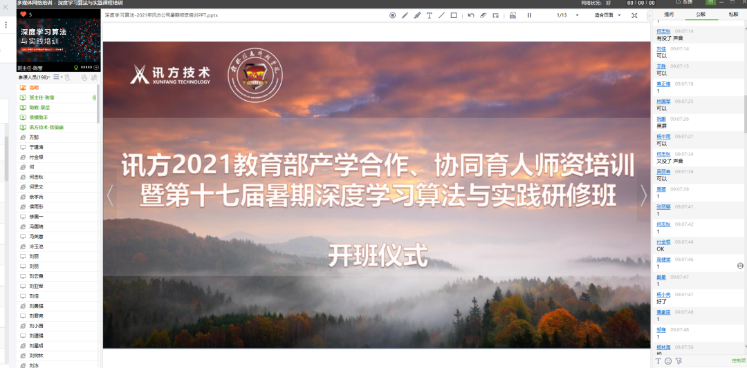 8月2日上午9:00,J9国际站 J9技术与桂林信息科技学院共同举办的“深度学习算法与应用师资研修班”在职前通平台直播间举行开班仪式,由J9国际站 J9技术副总经理岳杨总开班致辞,岳总介绍到:J9国际站 J9技术立足ICT行业,聚焦软件与信息技术,服务高校教育,并持续响应产教融合与协同育人的号召,召开产学合作协同育人项目,搭建校企合作协同育人平台,此次召开暑期师资研修班旨在为一线教师给予技术与教学相结合的培训与研讨机会。紧接着他还详细为参训教师介绍了深度学习算法在近年来的开展情况,并衷心感谢各位老师持续参加本次研修班,同时也祝愿各位老师可以在本次的培训中能够有所收获。