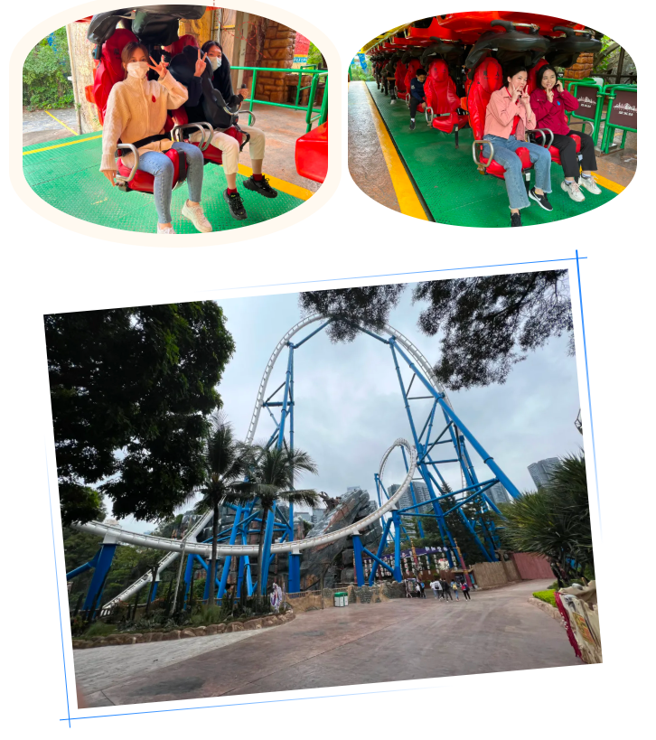 即使如此,也浇灭不了小伙伴们的热情,毕竟“惊涛骇浪”、“完美风暴”、“环翼飞车”、“大摆锤”、“矿山车”、“激流勇进”还在等着大家呢~